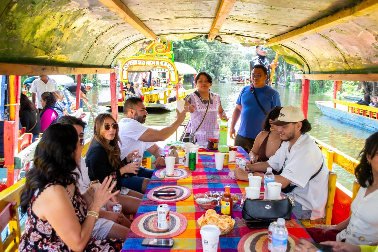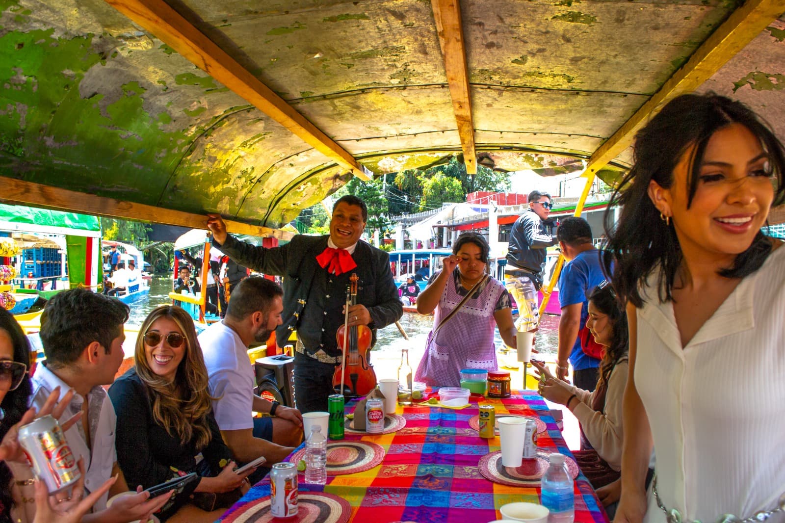 Paseo saliendo del embarcadero al canal principal. Durante cualquiera de los paseos podrás encontrar músicos (mariachis, norteños, tríos, marimba o salterio) a quienes podrás contratar por canción; a vendedores de antojitos, artesanías y WC..